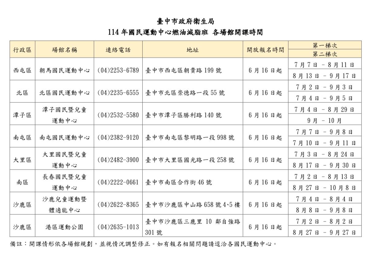 也結合台中國民運動中心及醫療院所辦理燃油減脂班