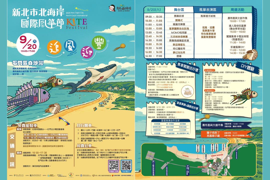 2025 北海岸國際風箏節將於 9 月 20 日(六)10:00–17:00 在 新北市石門區白沙灣 登場