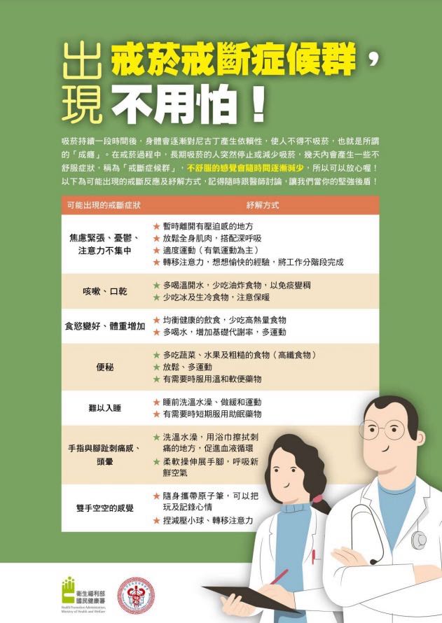 戒菸的路上,無需再單打獨鬥!國民健康署推動多元戒菸服務,提供免付費資源,協助民眾克服生理戒斷症狀,降低戒菸過程中的不適感。透過戒菸專線(0800-636363)或前往全國戒菸服務合約醫事機構諮詢,可提升戒菸成功率至少3成。為守護家人與寵物的健康,及早啟動戒菸行動,共同營造清新無菸的家庭環境,打造更安心與健康的生活空間。