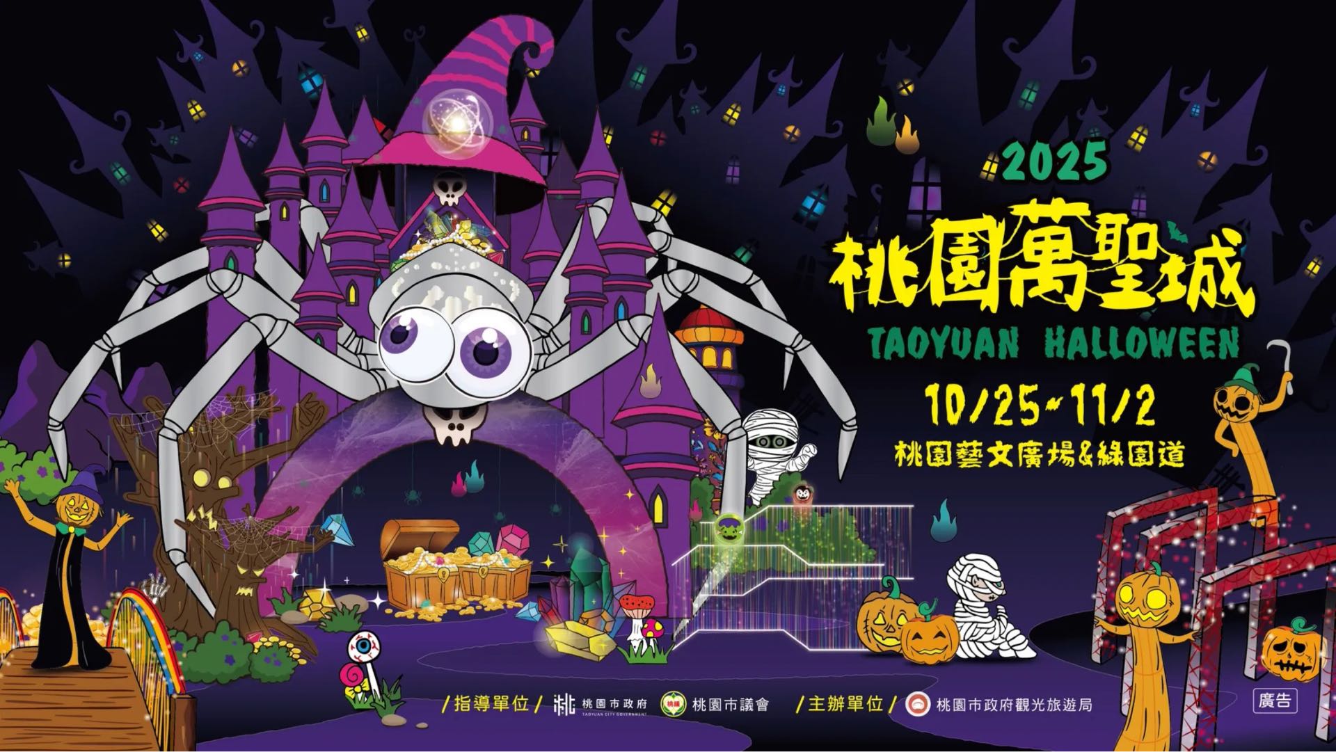 活動亮點:桃園年度最盛大的萬聖節活動登場,藝文廣場將搖身一變為充滿驚喜的「魔蛛古堡」,打造沉浸式萬聖夜氛圍。現場結合夜間變裝遊行、主舞台演出、變裝比賽、市集與燈光秀,節慶感滿點。13米高的魔幻蜘蛛王與多座主題裝置貫穿全區,夜晚氣氛濃厚,成為每年萬聖節最受期待的打卡熱點。