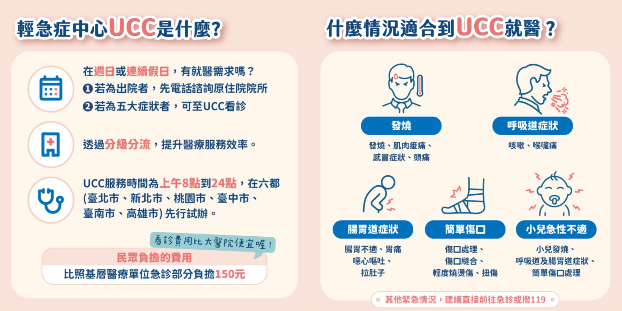 為了紓解醫學中心急診長期壅塞問題,健保署推動的「假日急症中心」(Urgent Care Center, UCC)將於 2025 年 11 月 2 日(日) 在六都首波設置 13 處據點 試辦上路