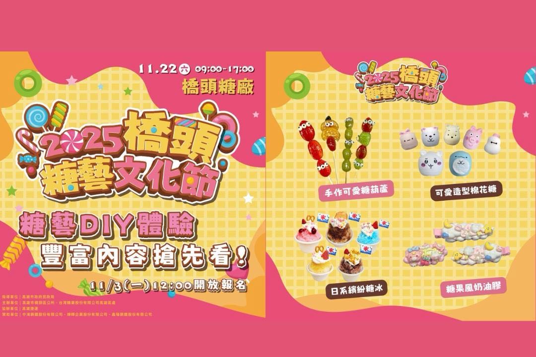 一走進橋頭糖廠園區,空氣中就會瀰漫著糖香味,一年一度的「橋頭糖藝文化節」即將登場啦!今年不只有拍照打卡的夢幻場景,還有讓人邊玩邊吃、邊創作邊療癒的有趣活動